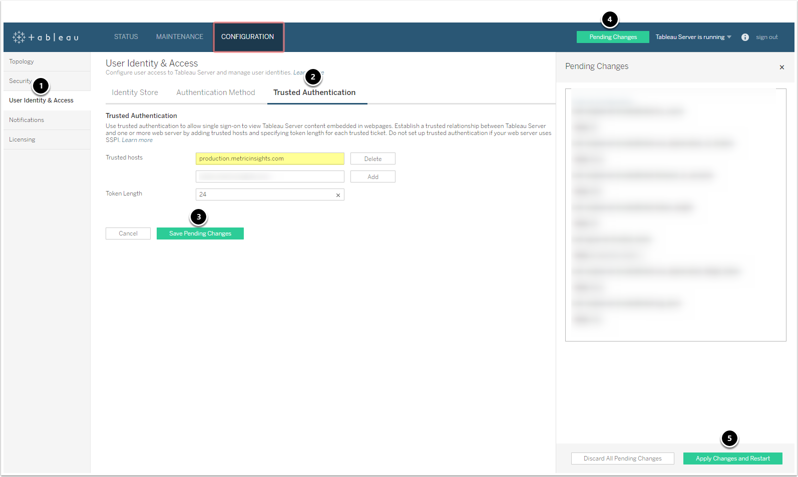 - For more information, refer to Add Trusted IP Addresses or Host Names to Tableau Server