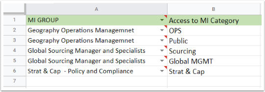 NOTE: MI GROUP column lists the Groups within Metric Insights only.