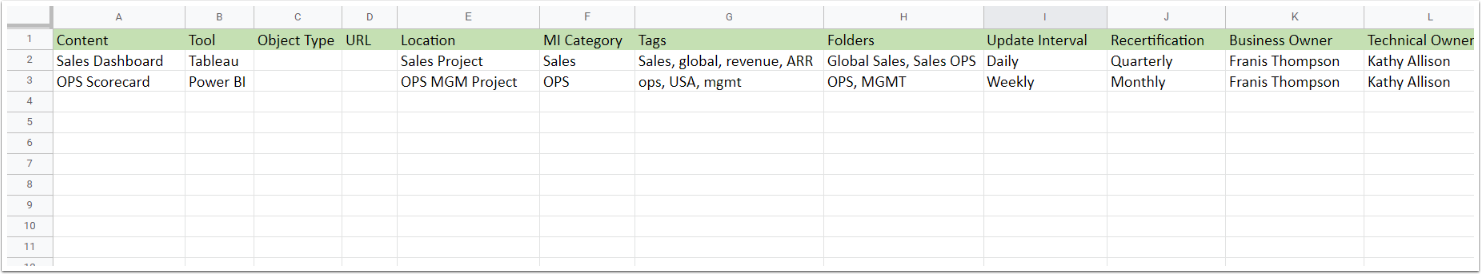 This article describes how to use a spreadsheet to strategically onboard content to Metric Insights in a more efficient and organized way.