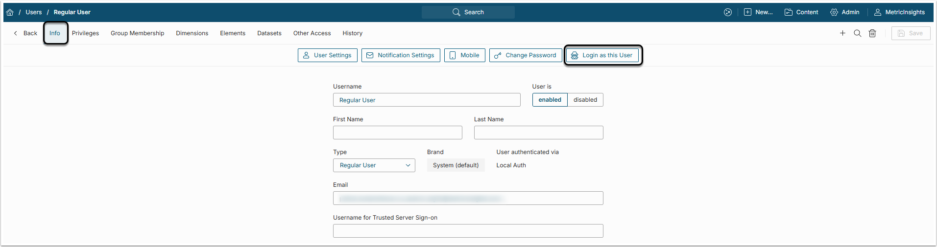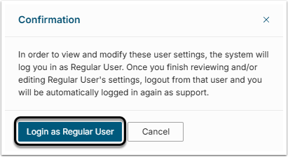 To quickly solve any issues Regular Users and Power Users may have faced, Administrators have to make sure they can reproduce the problem and debug it. For this purpose, Administrators can log in as ANY User created in the system and find/fix issues occurred in User account.