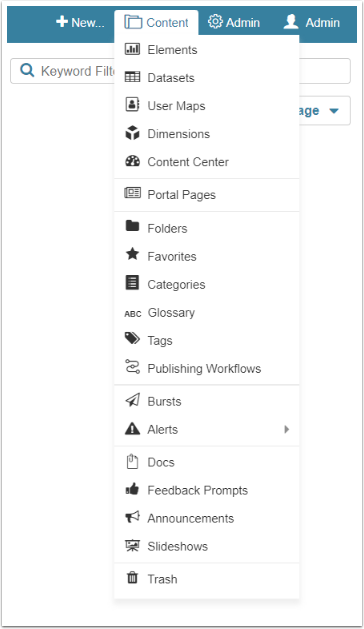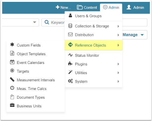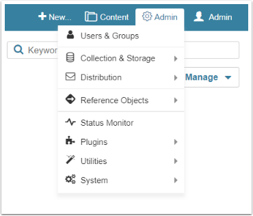 This drop-down menu is designed to help the Administrators and Power Users to quickly create system entities.