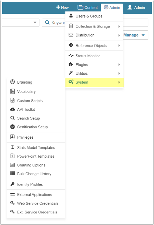 Users with administrative privileges have several ways of accessing the system managing functionality.