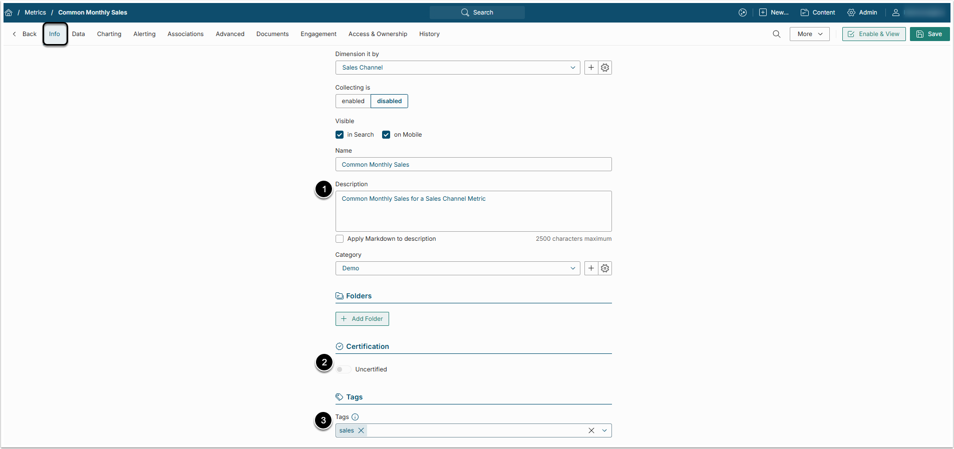- Category: Select the Category where the new Metric will be placed.