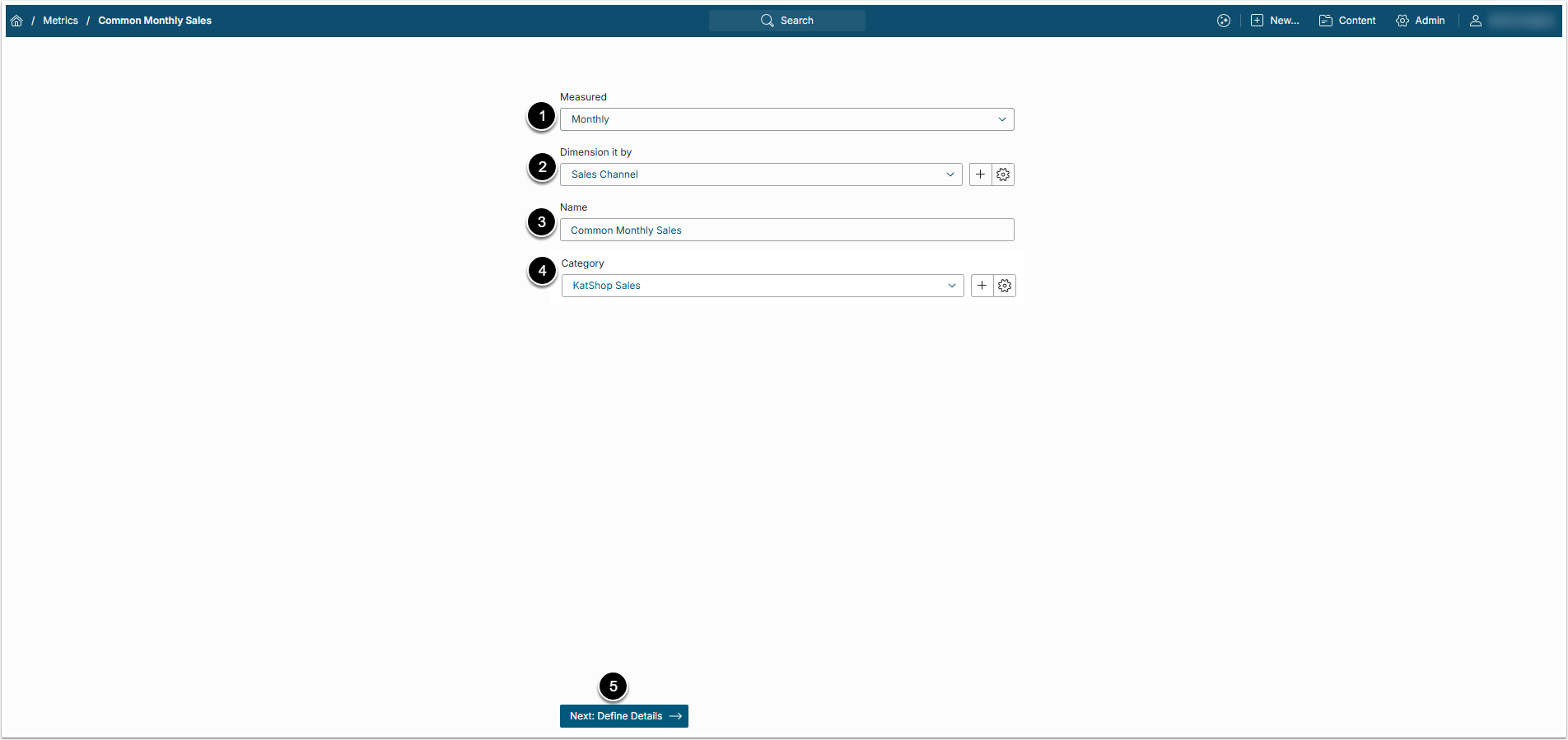 - [Next: Define Details] to open Metric Editor.
