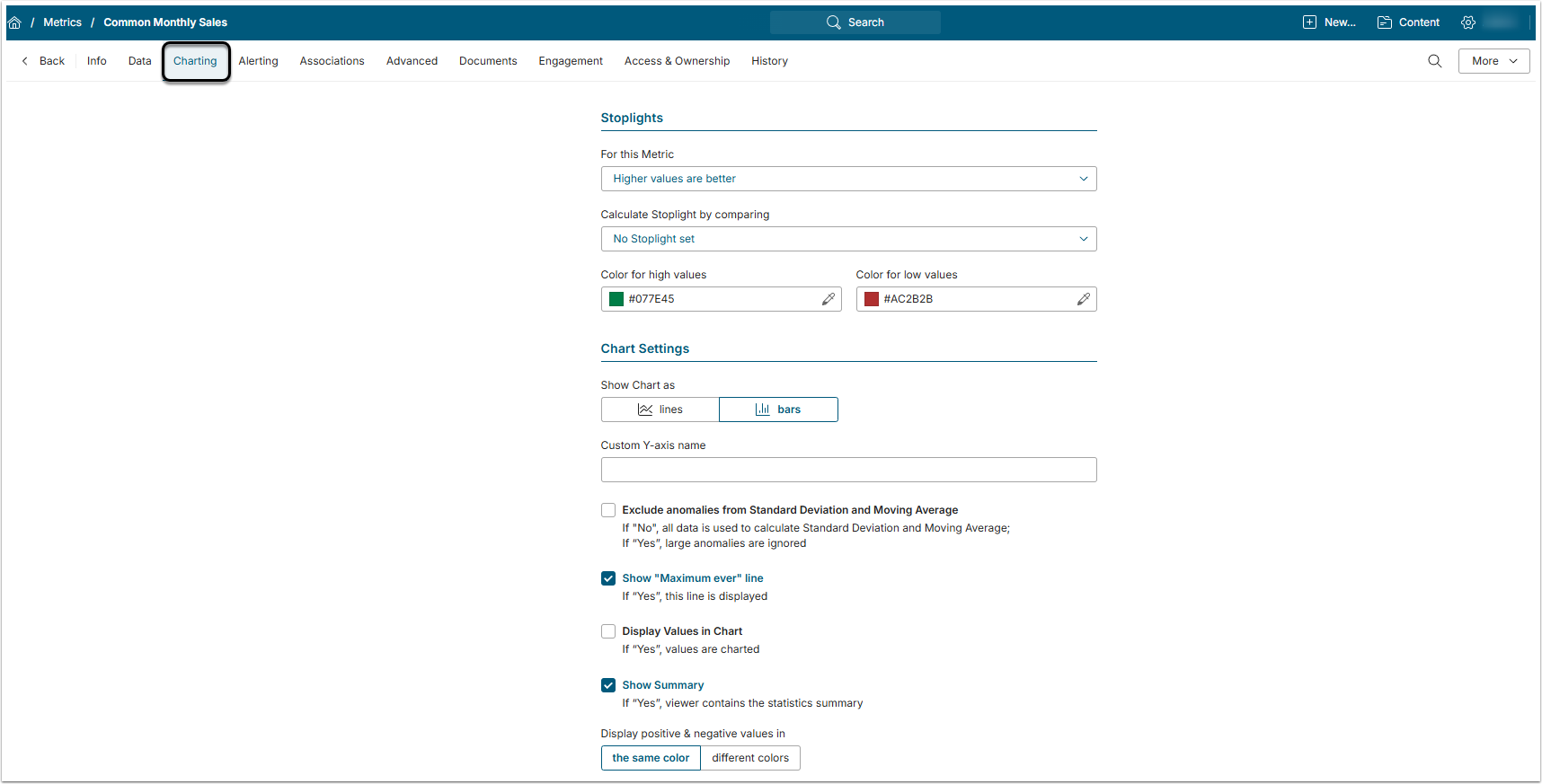 For a more detailed Charting tab overview, check the Metric Editor Overview article.