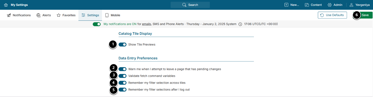 - Enable the system to remember and apply selected Filter Values on dashboard pages, Elements, and Portal Pages. - This option must be toggled on in order for the second option to appear for input.