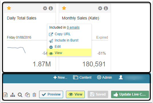 - Edit button redirects the User to Simple Editor and allows to change some of the Chart display options. Only Power Users and Admins have access to Edit option.