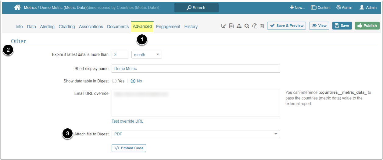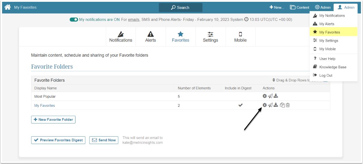 Access Content > Elements, find the Metric you want to attach as a file and click its Active Name Link to open the Metric Editor.