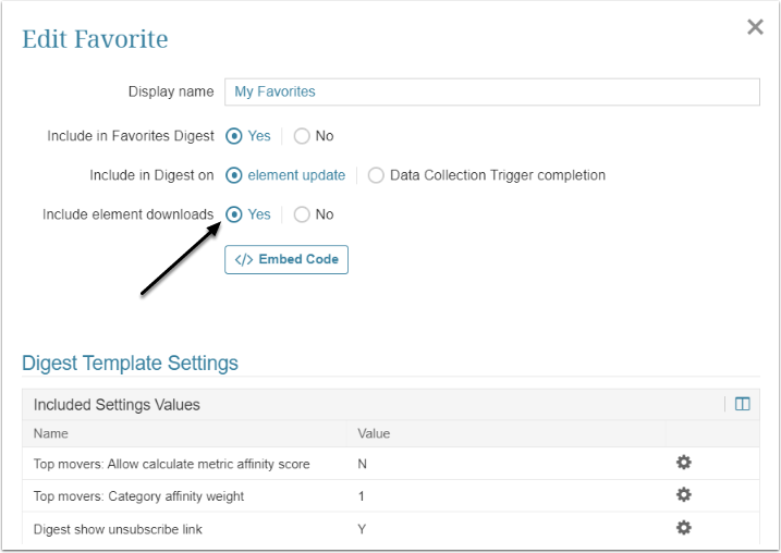 Switch Include Element Downloads to "Yes". Now all the Elements that were chosen to be attached to the Digest will be included to the email as a file of a chosen type.