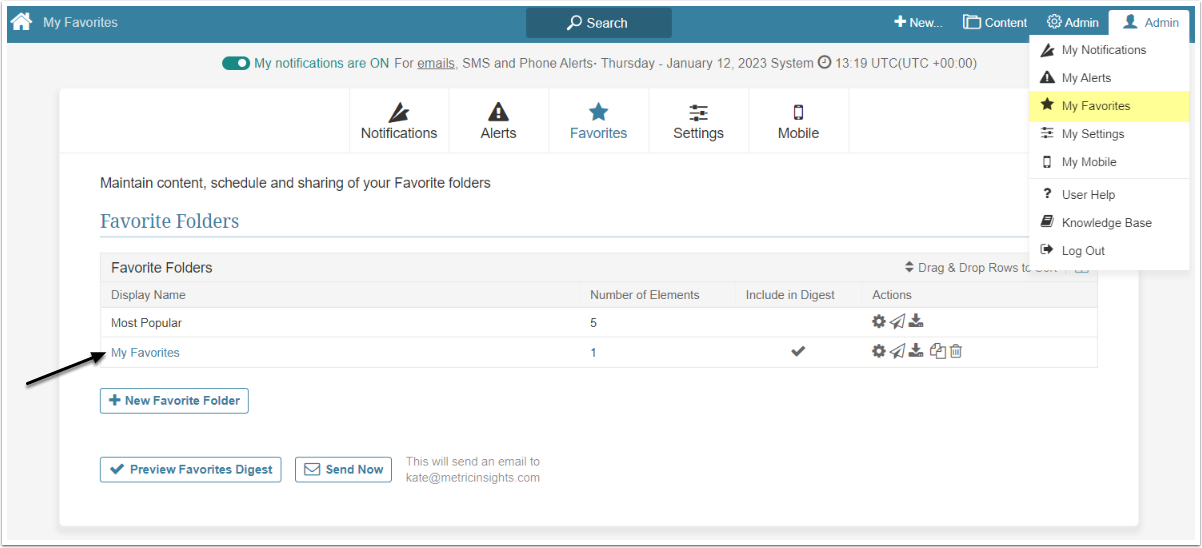 You can now see the Element in the Tiles in Grid table and the Report will appear in your Favorites folder when data is collected.