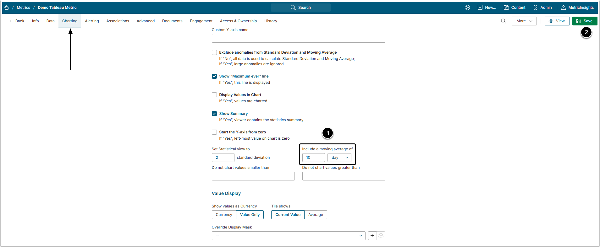 Open a Charting tab of the Metric Editor