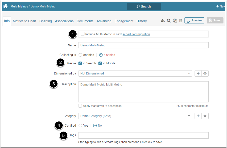 - Select the Include Multi-Metric in next scheduled migration checkbox to flag elements and then Migrate Content using our Export/Import Migration Scripts