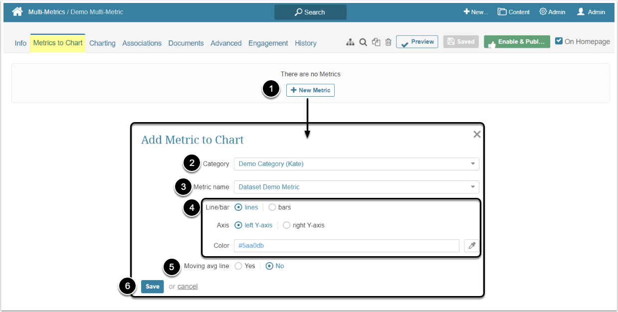 To change other Chart details complete the Charting tab settings. For more details about other Metric Editor tabs check the Metric Editor Overview article.
