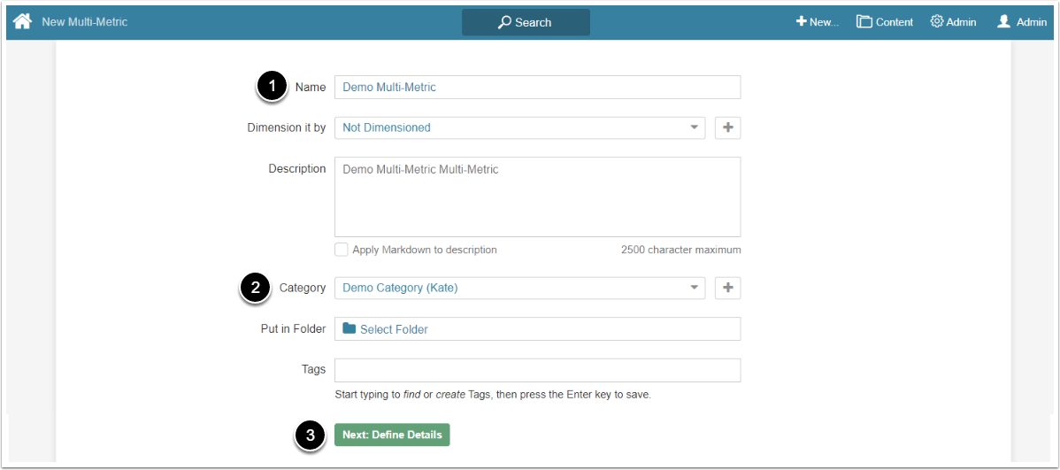 - Description: Optionally, add a description of the multi-Metric. It defaults from the Name