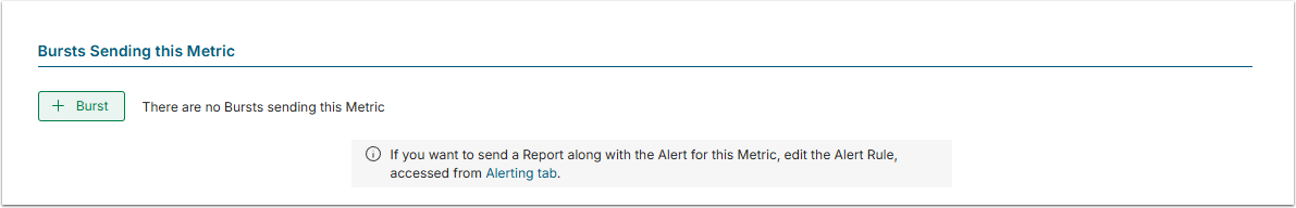 This section shows the list of Bursts to which this Metric is included. [+Burst] to add the Metric to another Burst.
