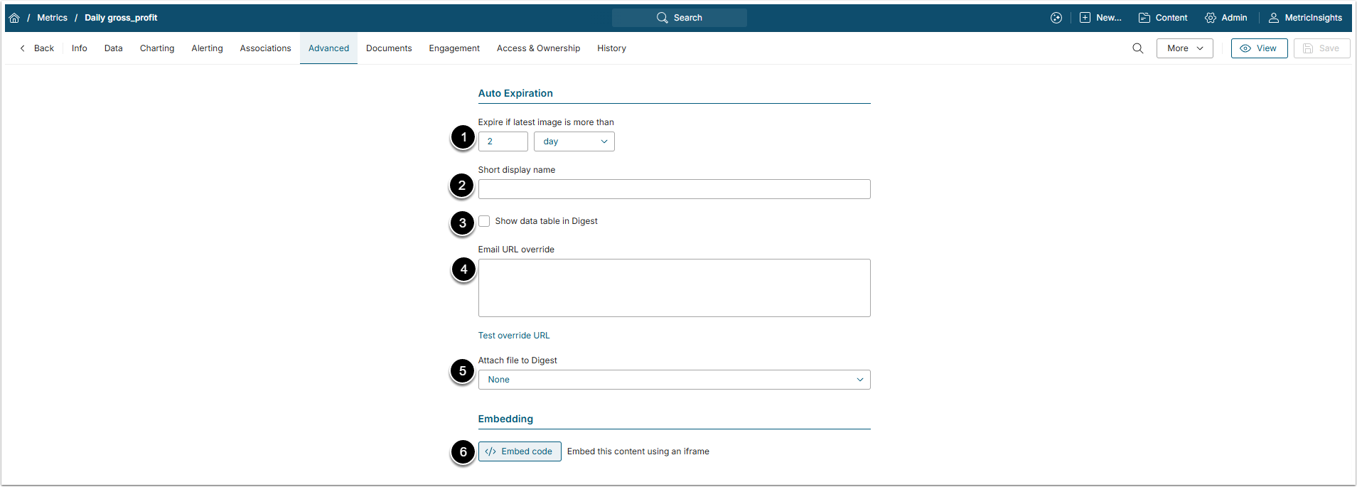 - Email URL override: When a User clicks on the Metric link in a digest, he can be redirected to the external portal/application. Provide a link to that web page.