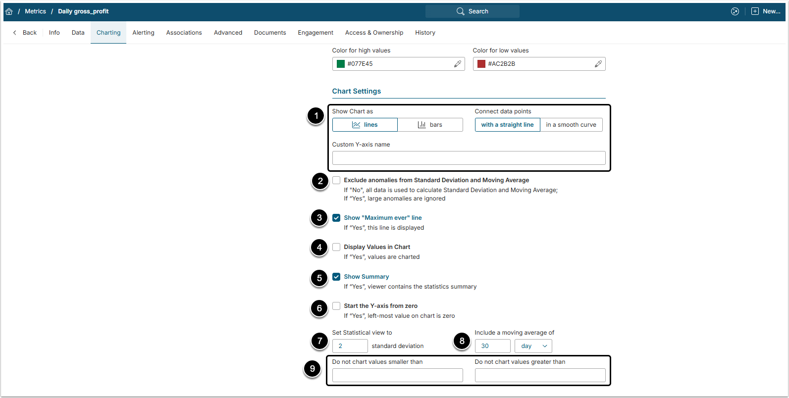- Do not chart values smaller/greater than: Optionally set to exclude specific values.