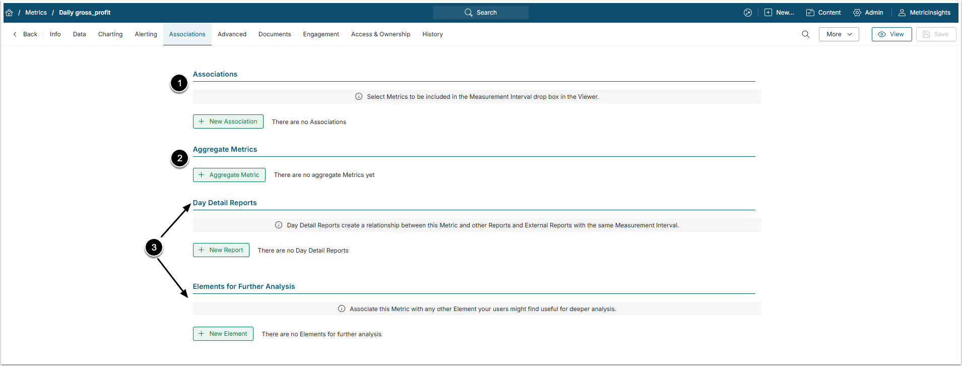 - Associations: Select Metrics to be included in the Measurement Interval drop box in the Viewer.