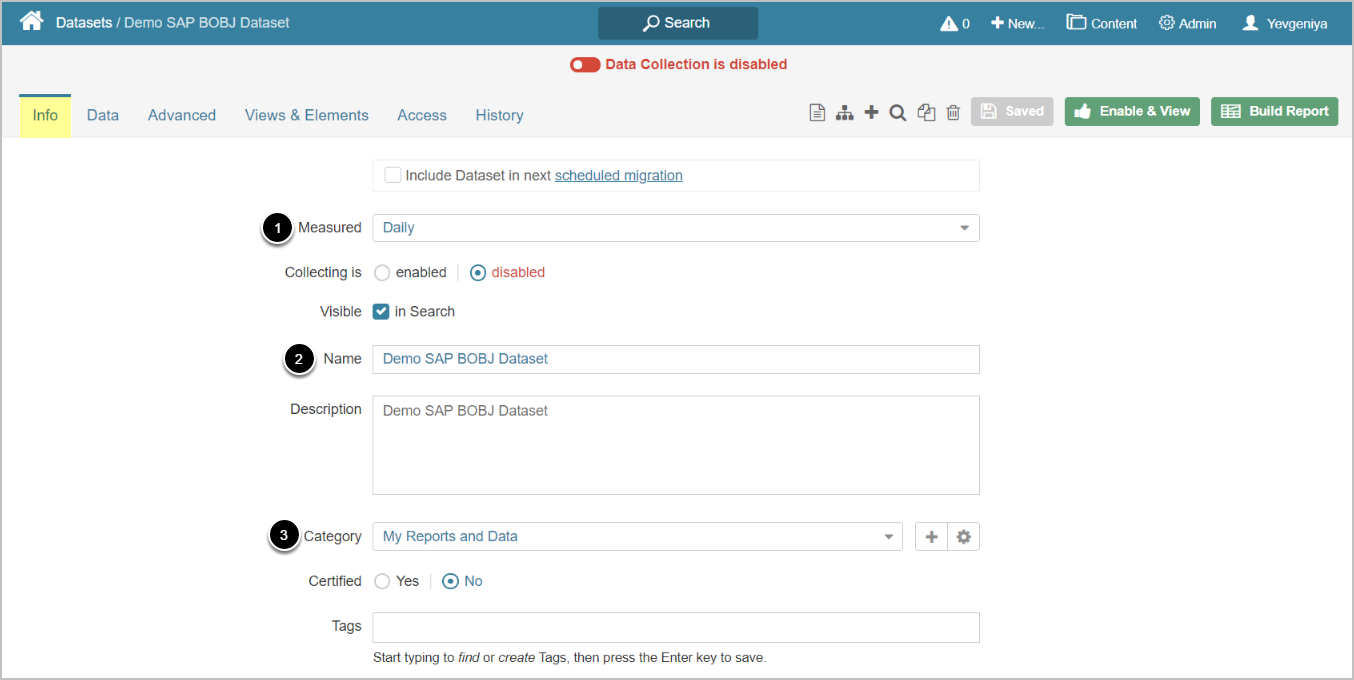 - Specify Category to place the Dataset