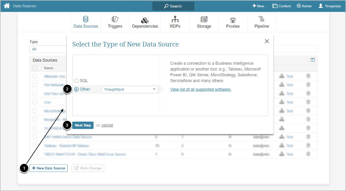 This article describes how to connect to ThoughtSpot in order to load data into Datasets and create content in Metric Insights.