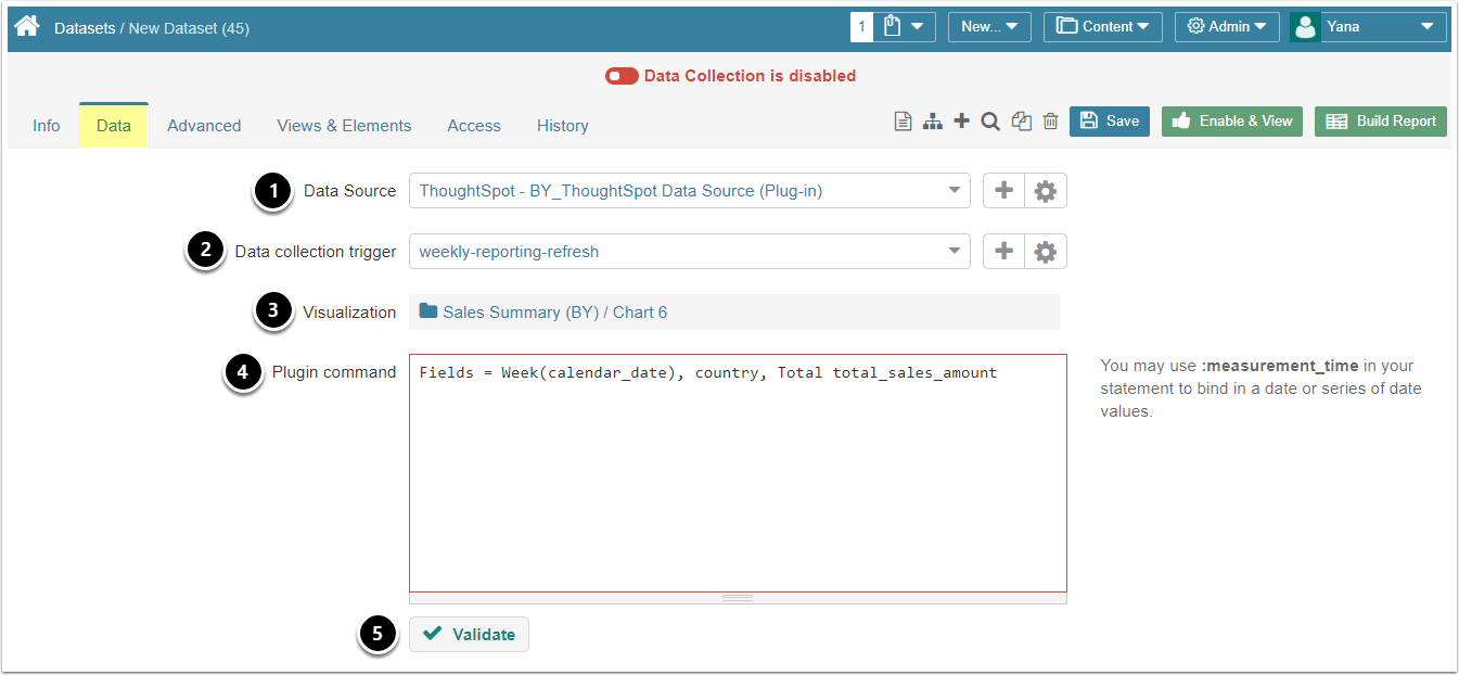 - Data Source: select the connection profile you have created for ThoughtSpot