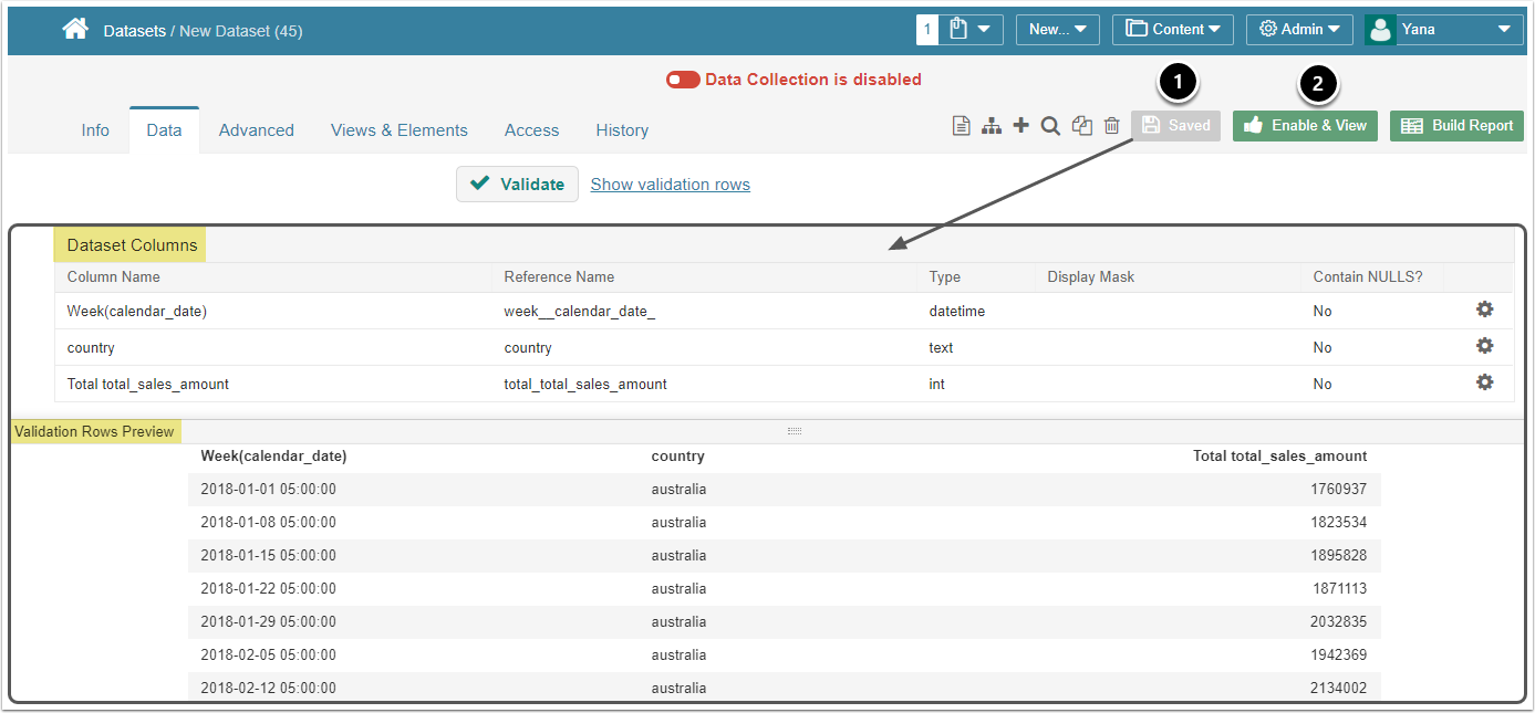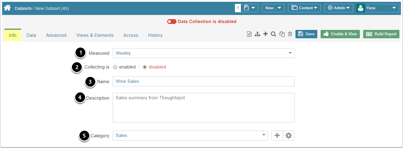 - Collecting: new Datasets are always disabled by default to make sure that you can take time to configure them properly before enabling. This setting is duplicated at the top of the screen