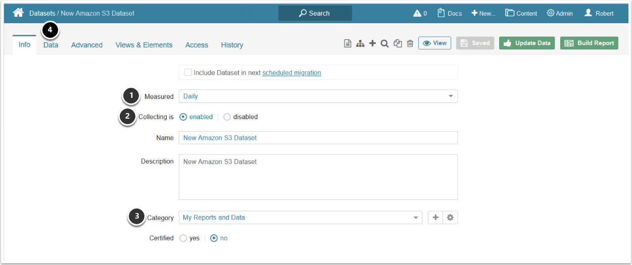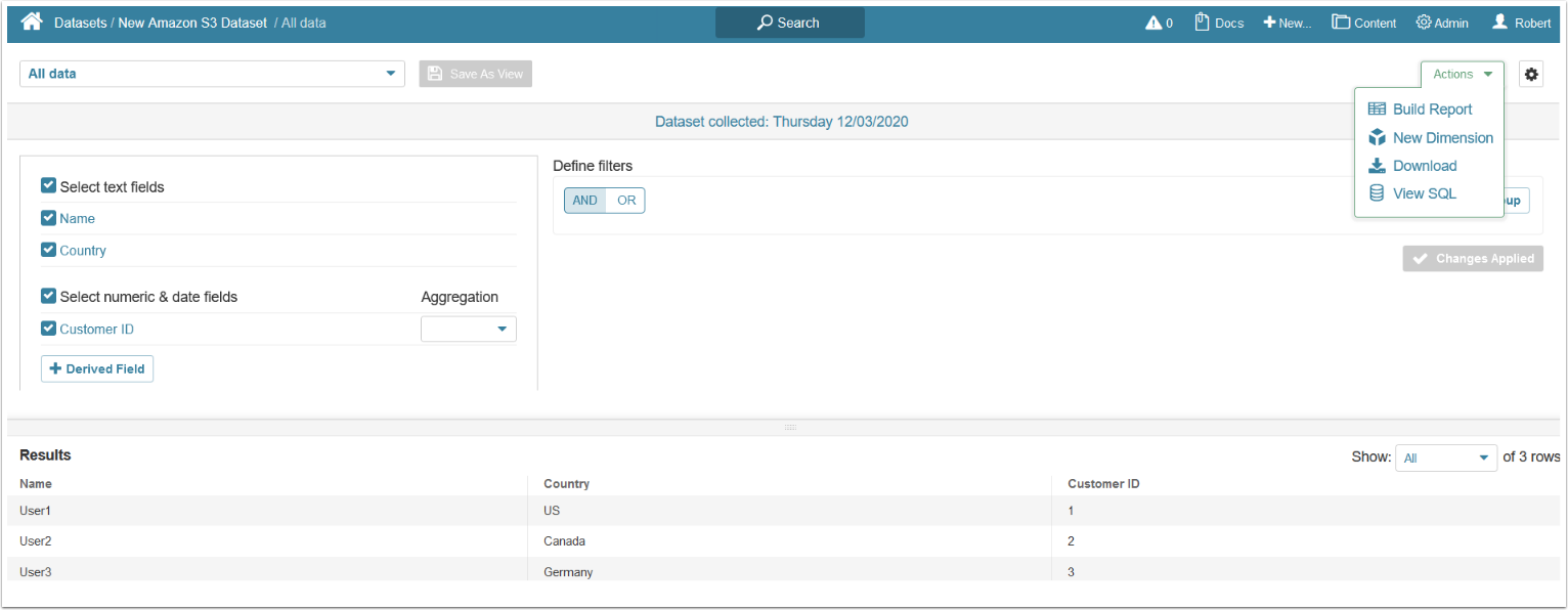 - Report: select an Amazon S3 object to serve as a basis of your Dataset