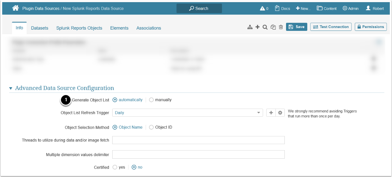 Generate Object List - automatically: Choose an Object List Refresh Trigger to collect Objects from Splunk automatically