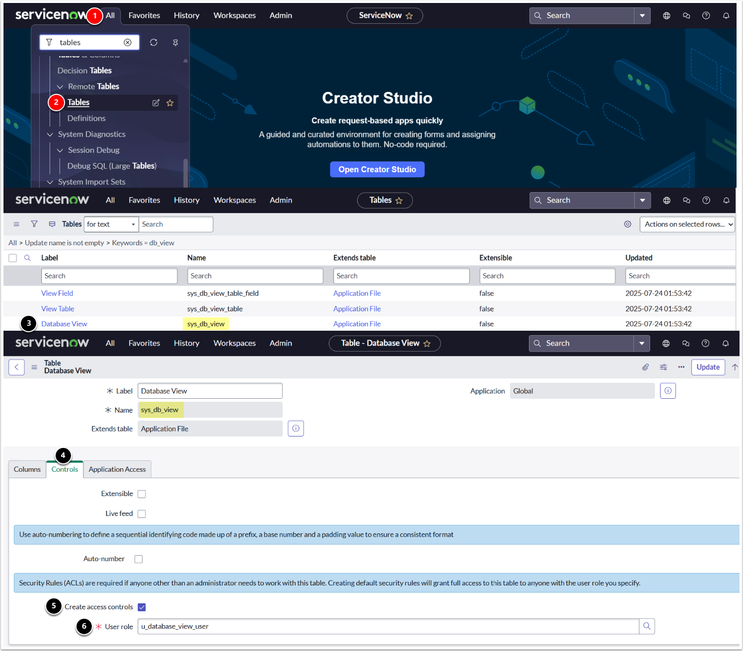 u_just_db_viewer- The u_just_db_viewer role must be added to the following ACL tables (see image below):- sys_upgrade_history