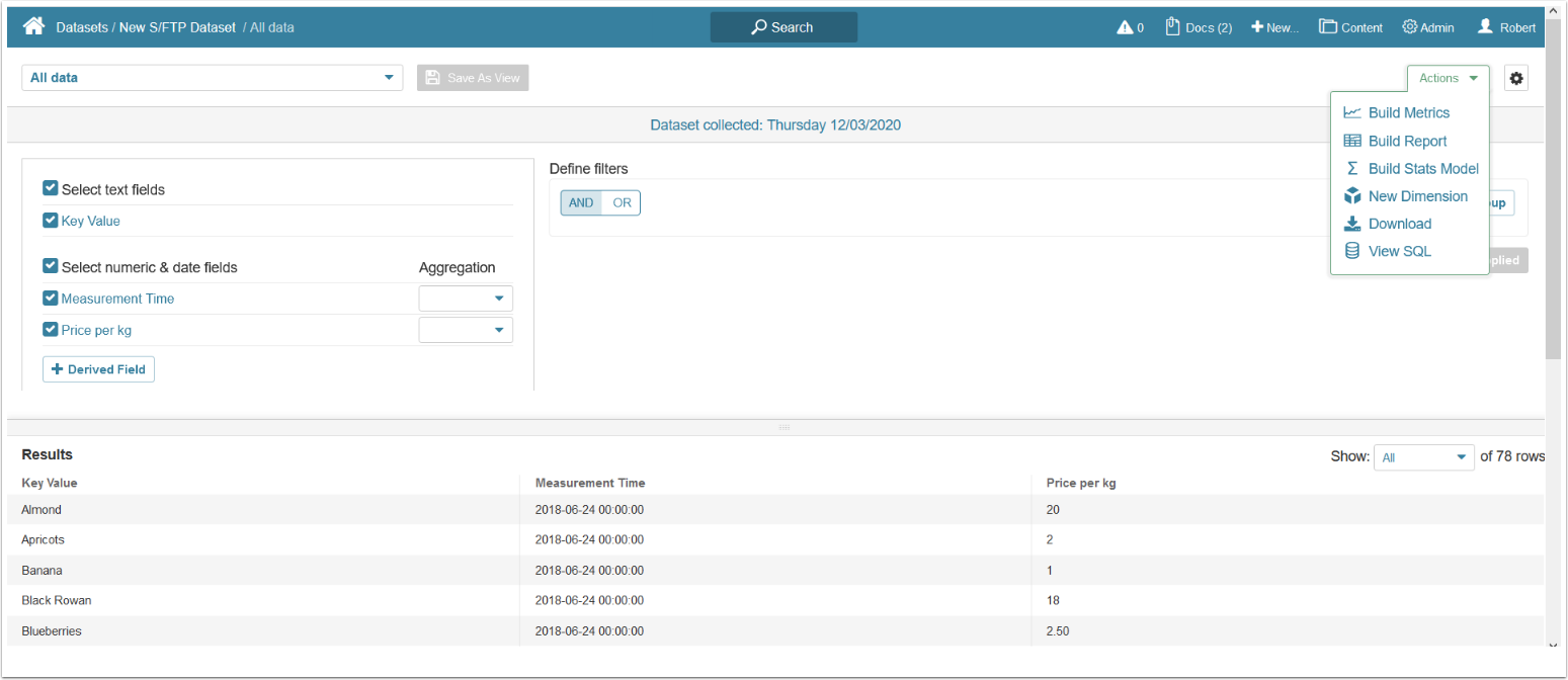 To view the options available to work with your new Dataset, see Access, Create, and modify Dataset Views