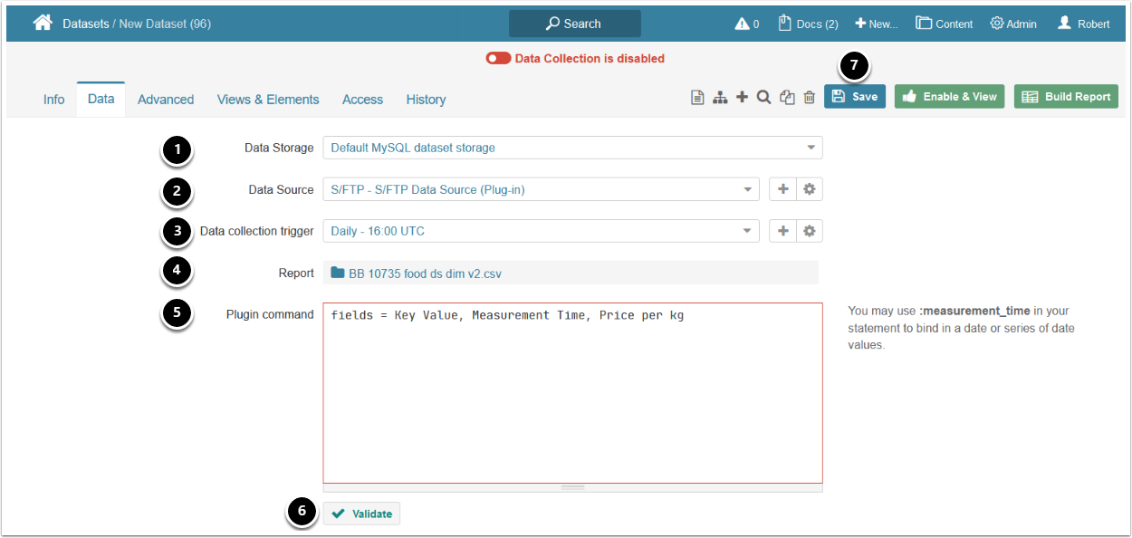 - Report: select a file that should serve as a basis of the Dataset
