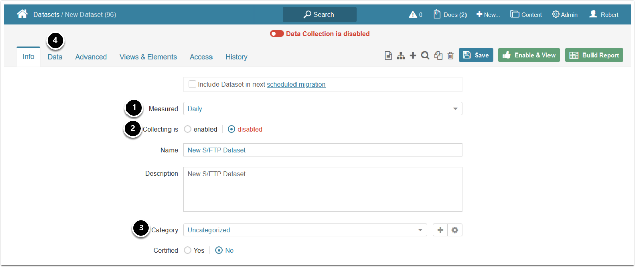- Category: specify the Category where your Dataset will be placed