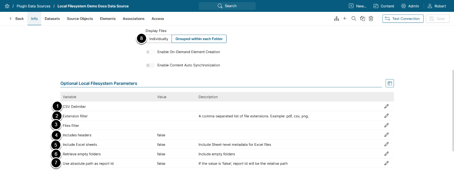 Use absolute path as report Id: Select whether the Report ID displayed on the Source Objects tab should include the path from the Path parameter- The default value is "true"