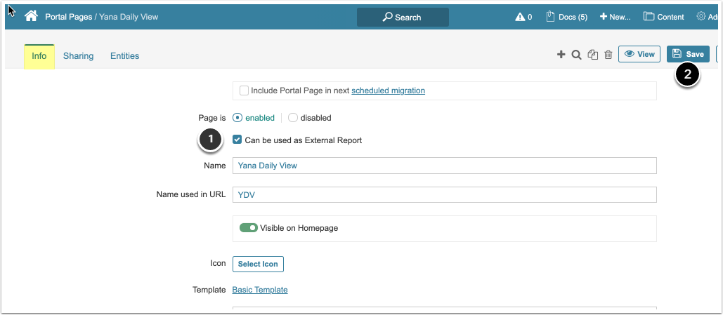 - Can be used as External Report: Click the checkbox in order to make this Portal Page available as a Data Source