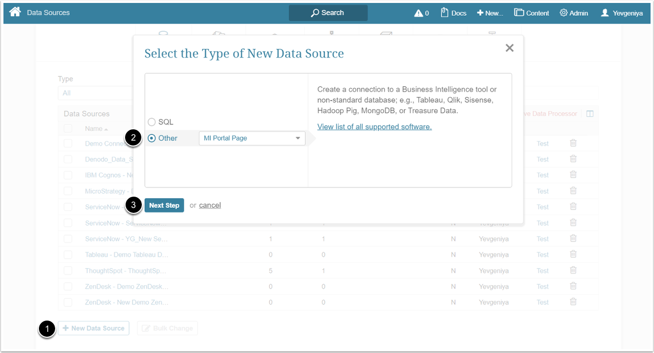 3. Create Data Source: Admin > Collection & Storage > Data Sources