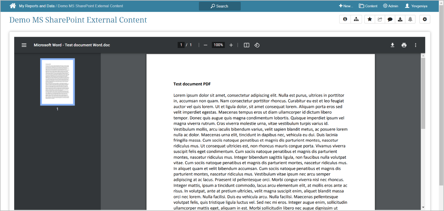 | Word | Displayed as PDF with the standard browser PDF viewer functionality | Displayed as a static image of the first page, which opens a PDF version of the file in a browser PDF viewer as a new tab when clicked | – |