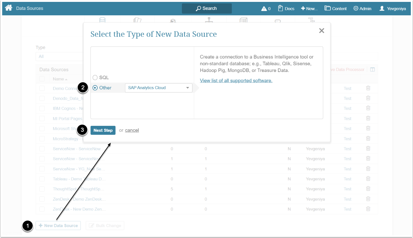 - Choose "SAP Analytics Cloud" from Other drop-down list.