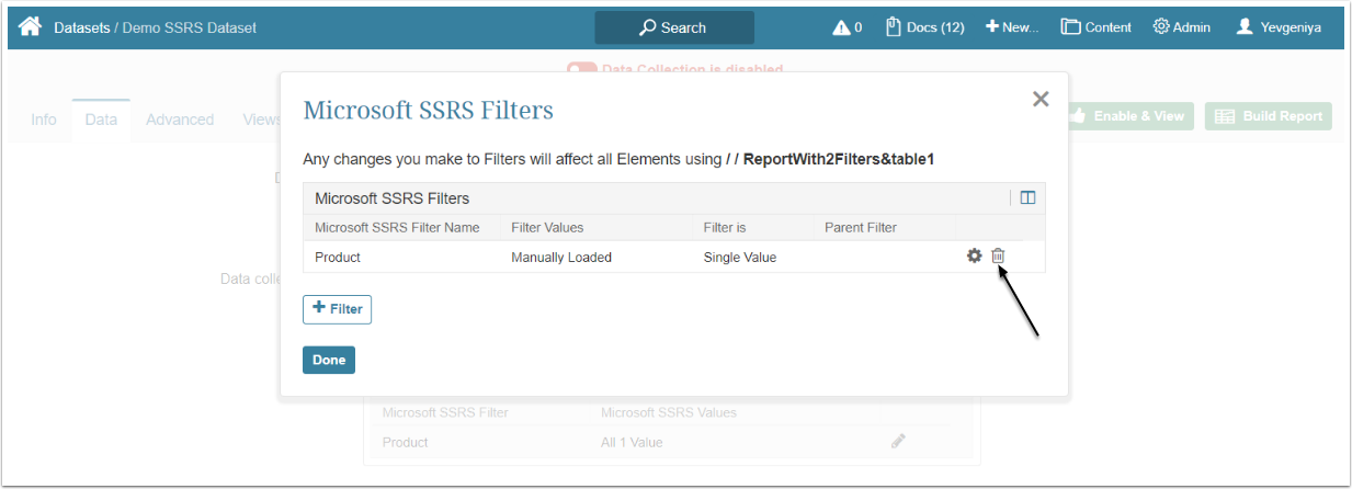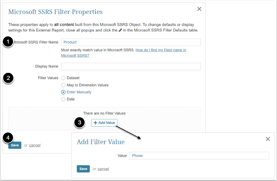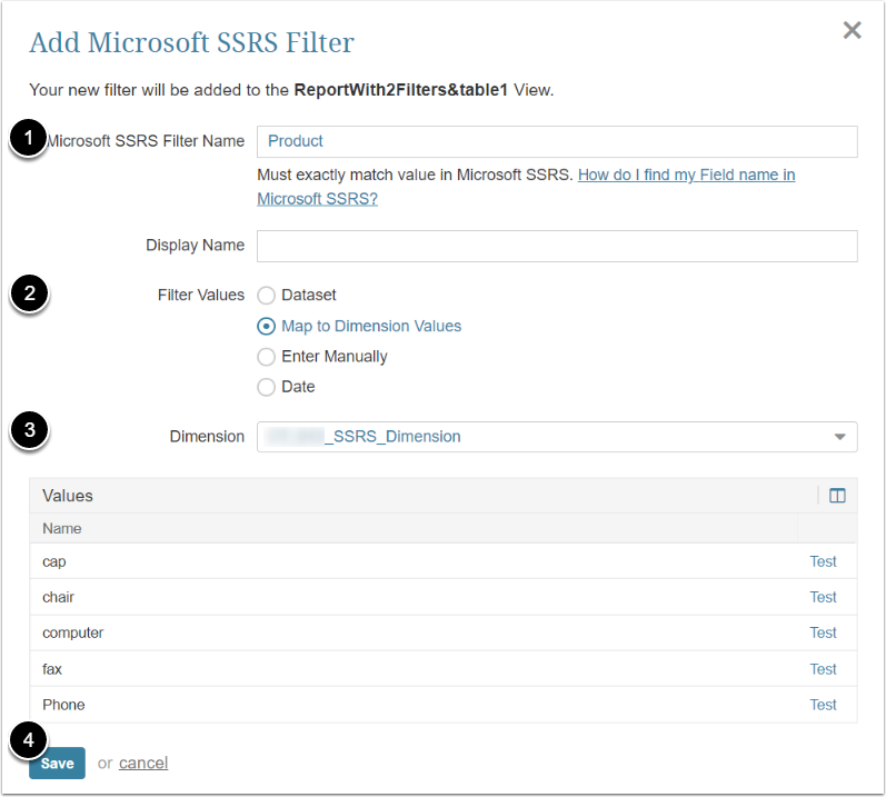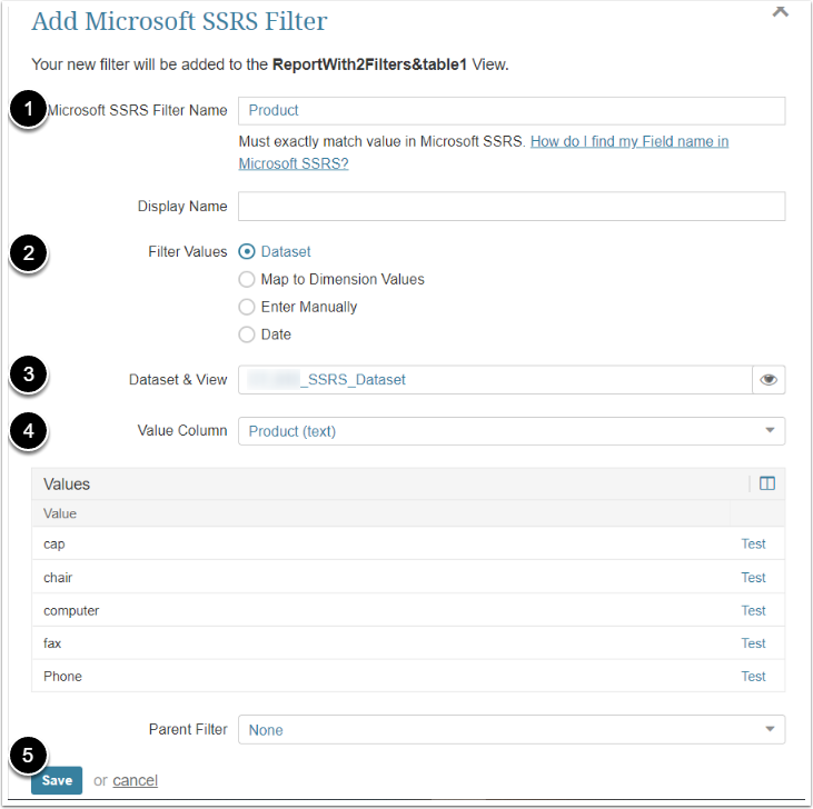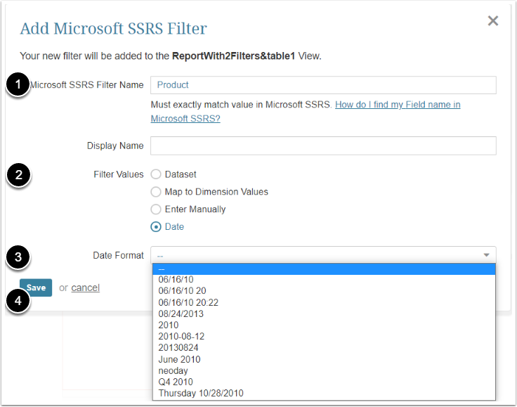 - Enter Microsoft SSRS Filter Name