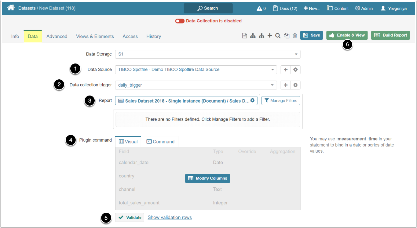 - Select the TIBCO Spotfire Report that should serve as a basis for Dataset- NOTE: Pre-filtering of TIBCO Spotfire data is not allowed by TIBCO API.