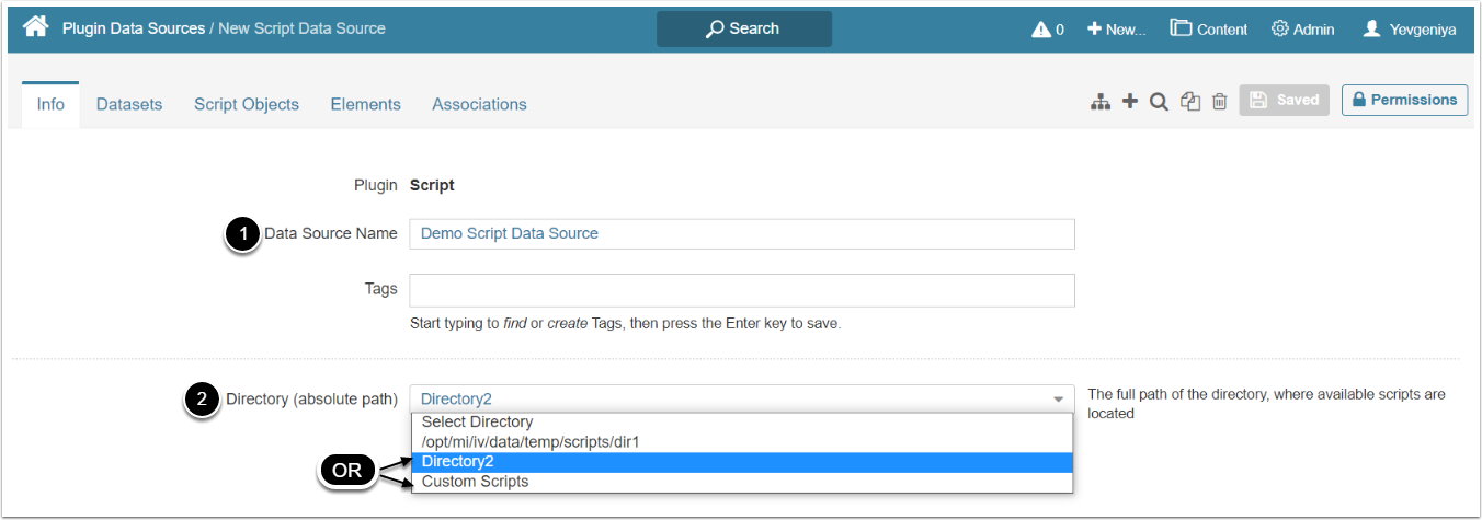 - All directories listed in the config file are displayed in the Directory dropdown (see Provide the Required Script Plugin Parameters)