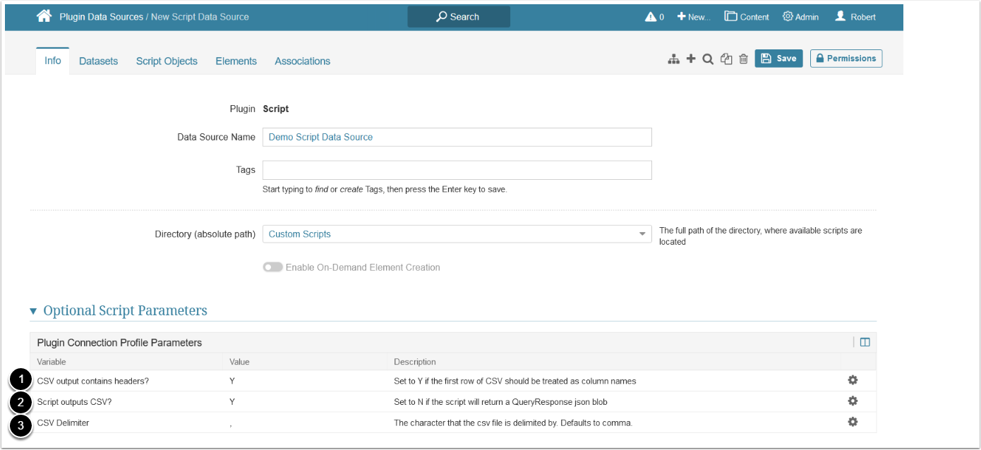 For details on creating Datasets, see Create a Dataset from Script Plugin.