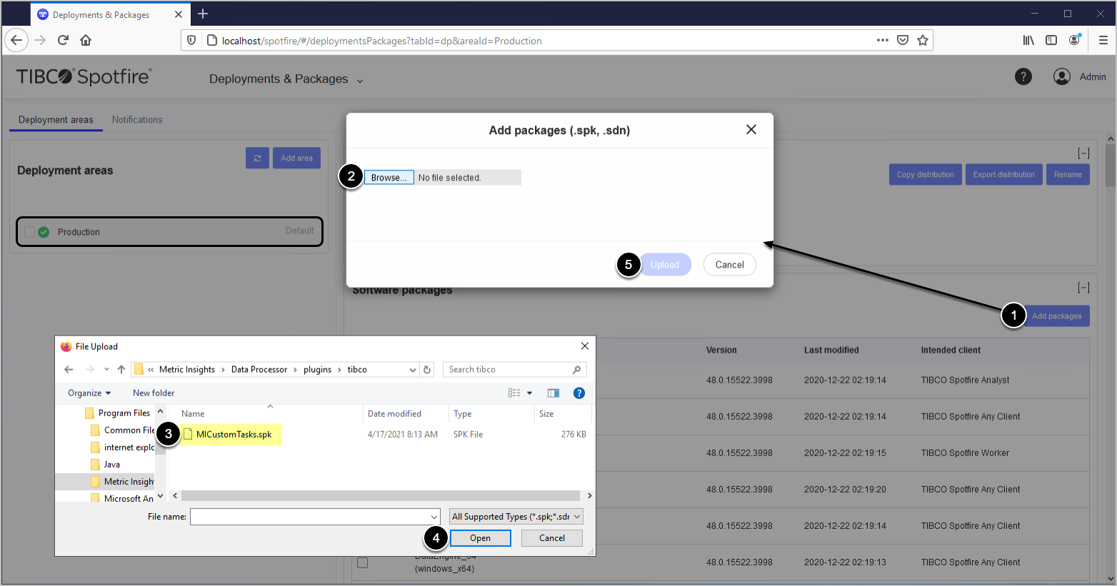 [Browse] to locate the MICustomTasks.spk file:- C:\Program Files\Metric Insights\Data Processor\plugins\tibco