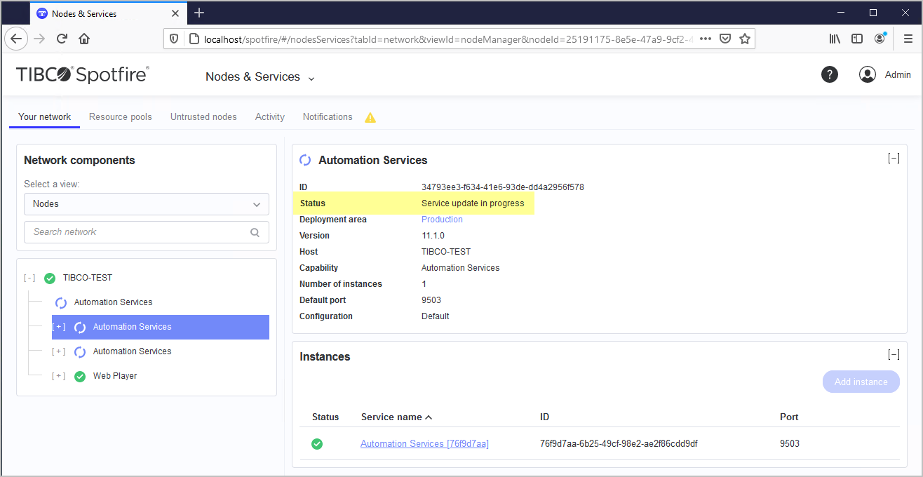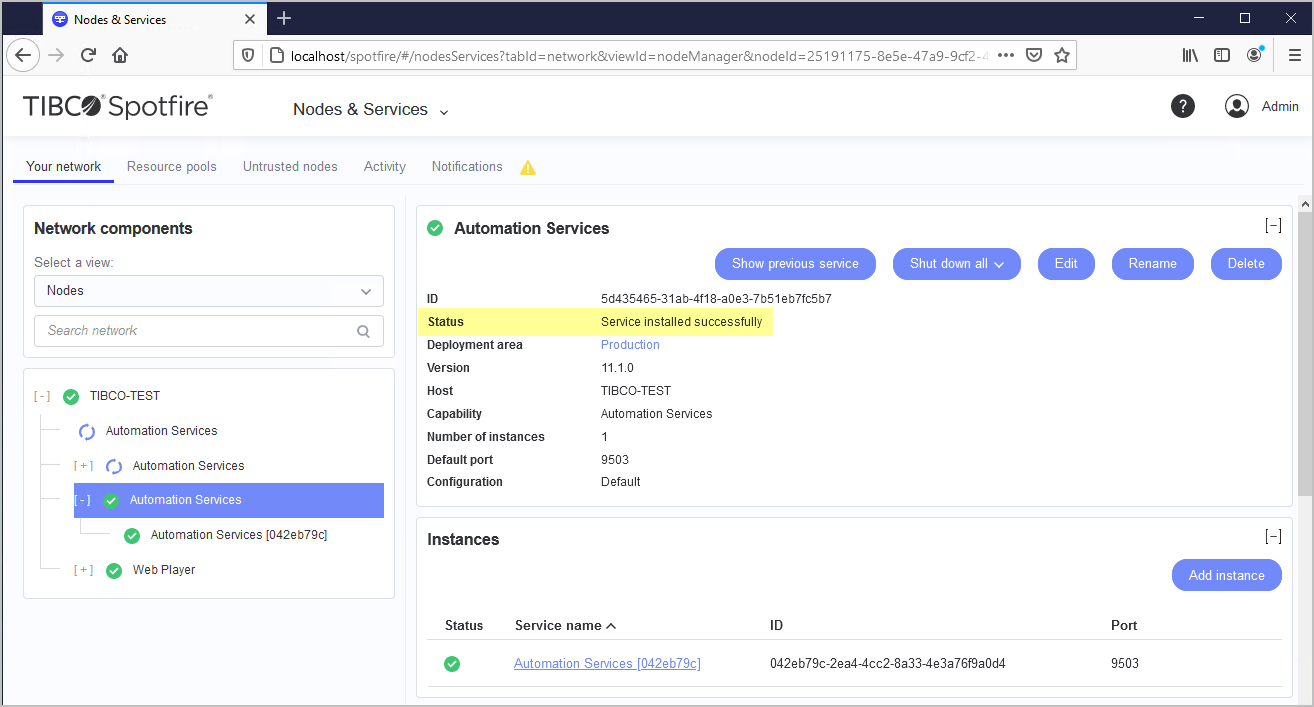 - Click the tree view symbol [+] to open the hierarchical structure of Network components and select the required Automation Services