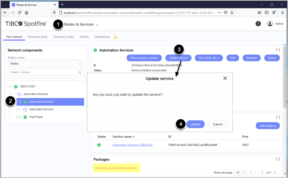 [Update]- Updating the service fetches the latest modules from the deployment area and creates new Automation Services