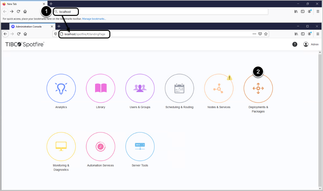 - Open your browser and type "localhost" in the address bar- Press Enter to be redirected to the Spotfire Homepage
