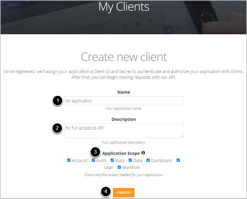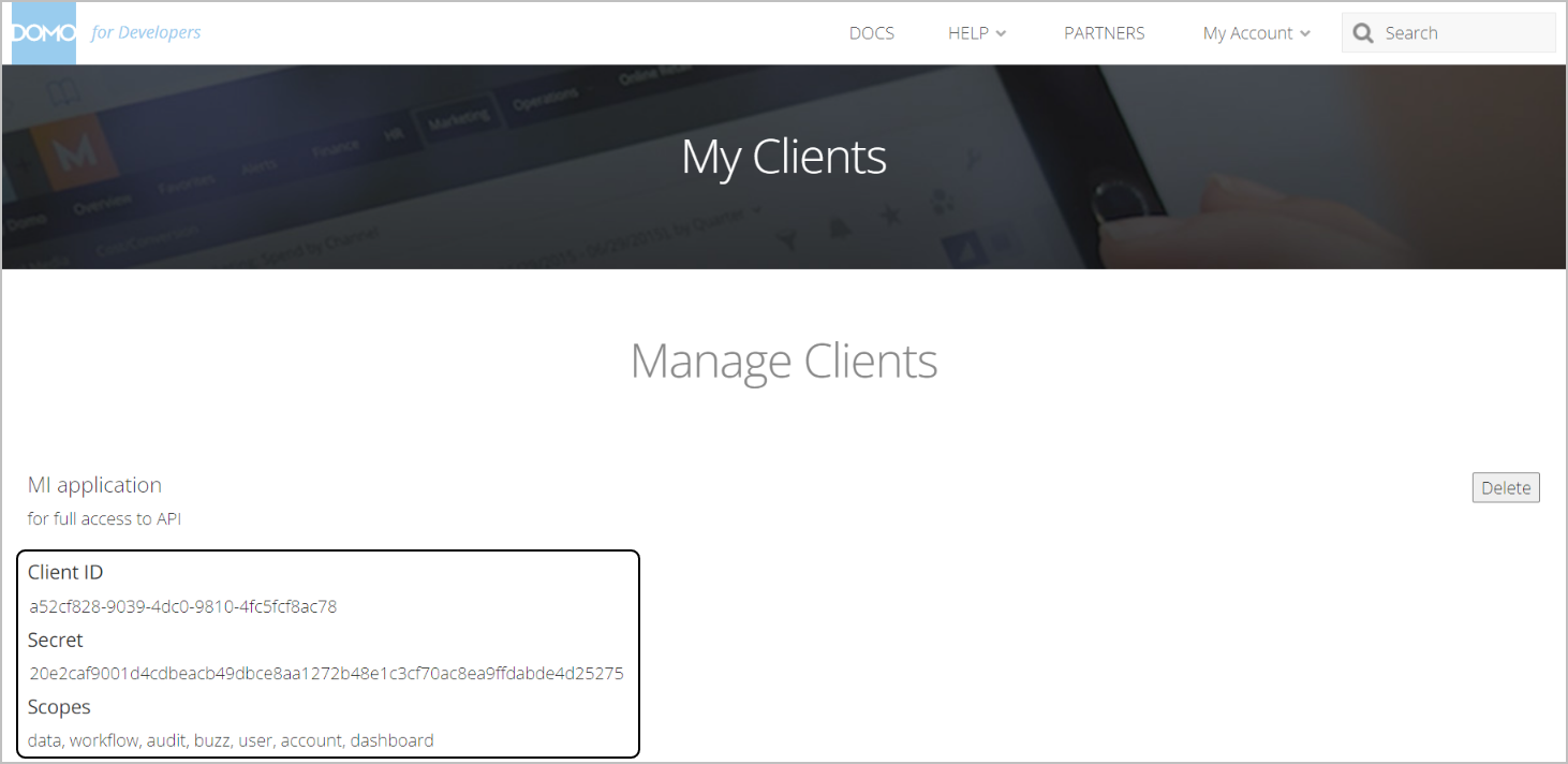 To be able to interact with Domo's APIs to the full extent, the following parameters are required: