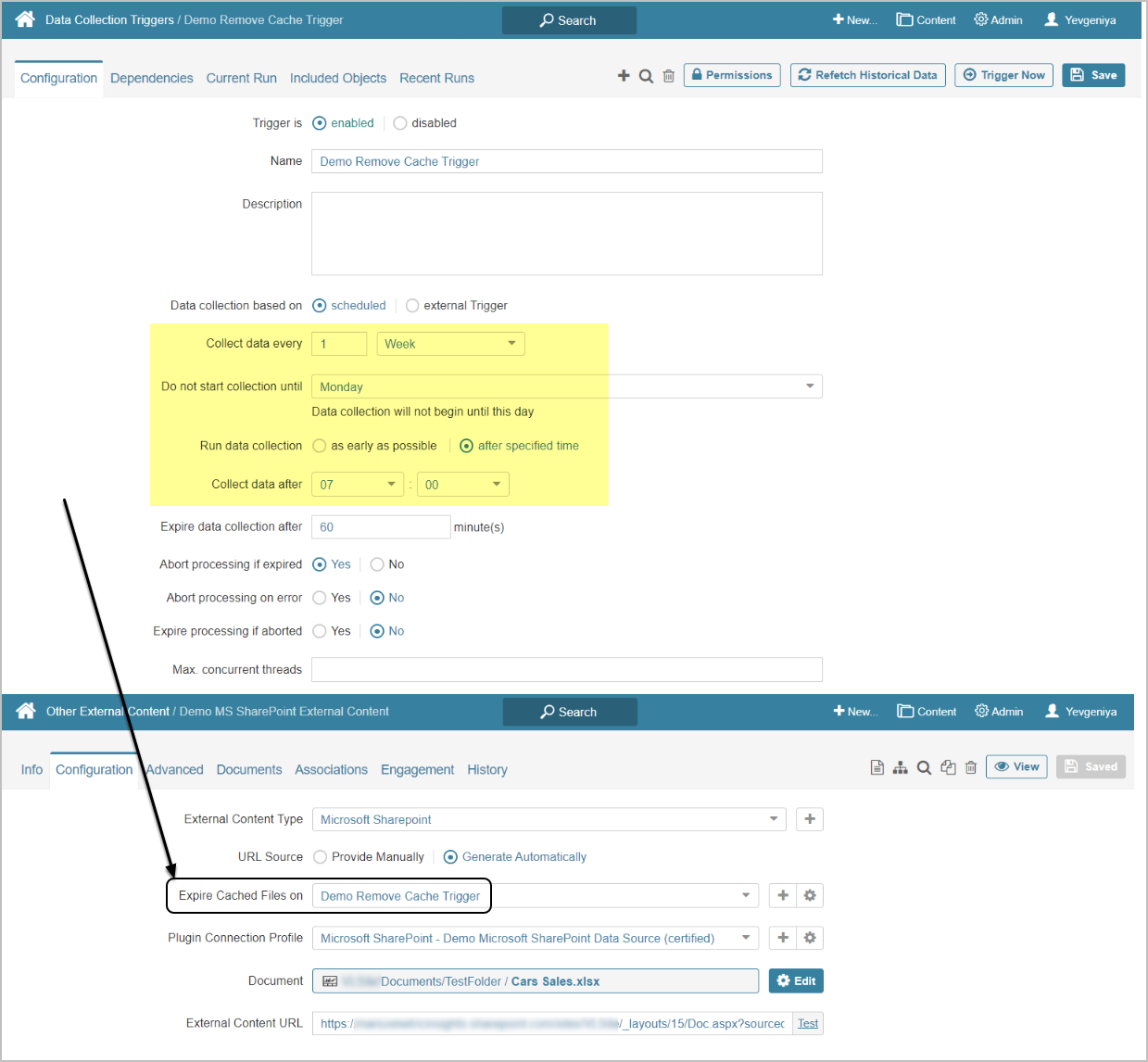 Cache clearing must be configured for each individual Other External Content created from MS SharePoint that will be used for Bursting.