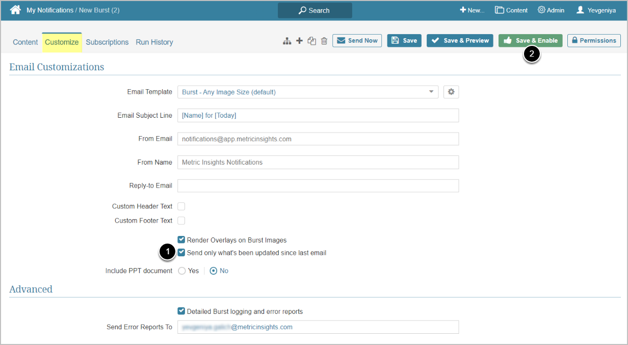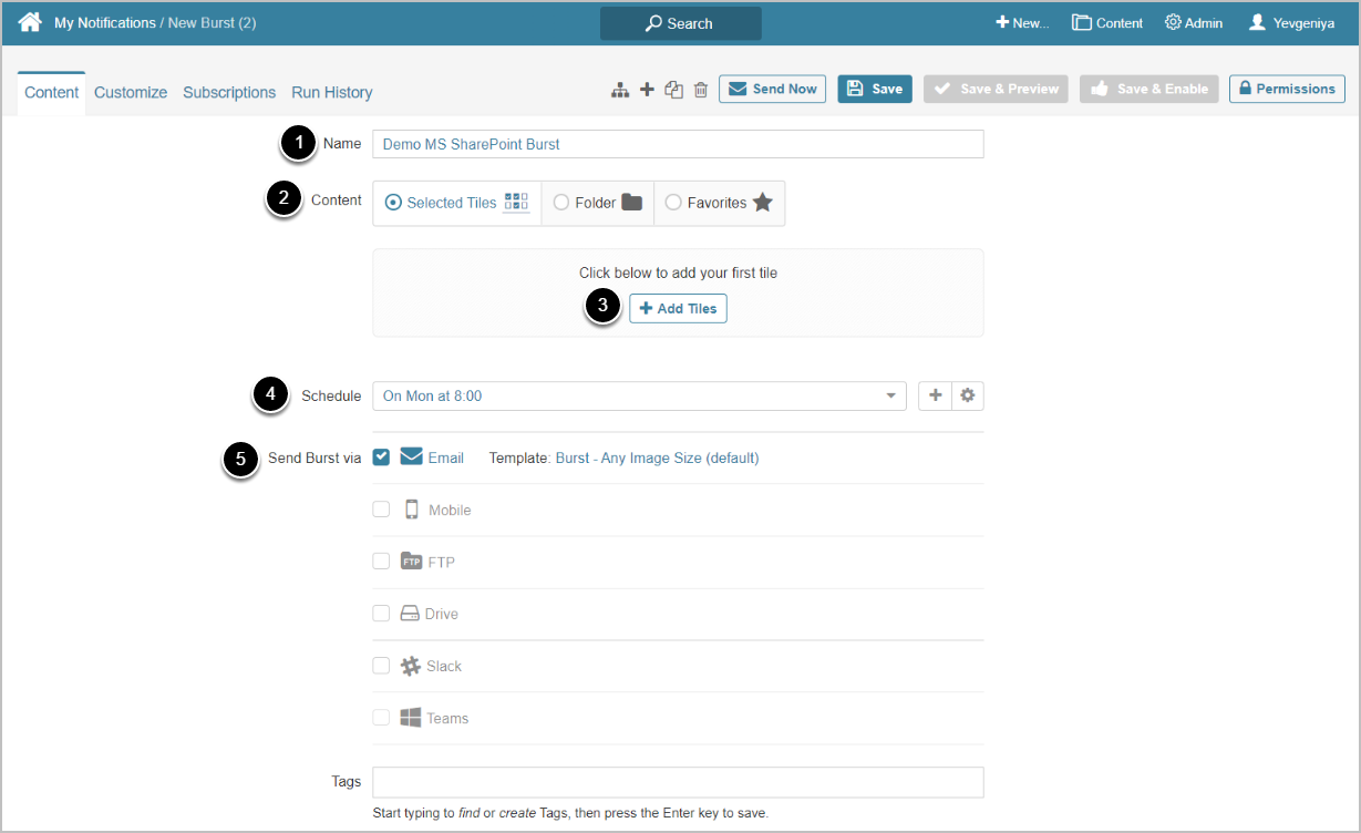 - Input a meaningful Name for the Burst.- The Name will be used as an email header once notifications are sent.