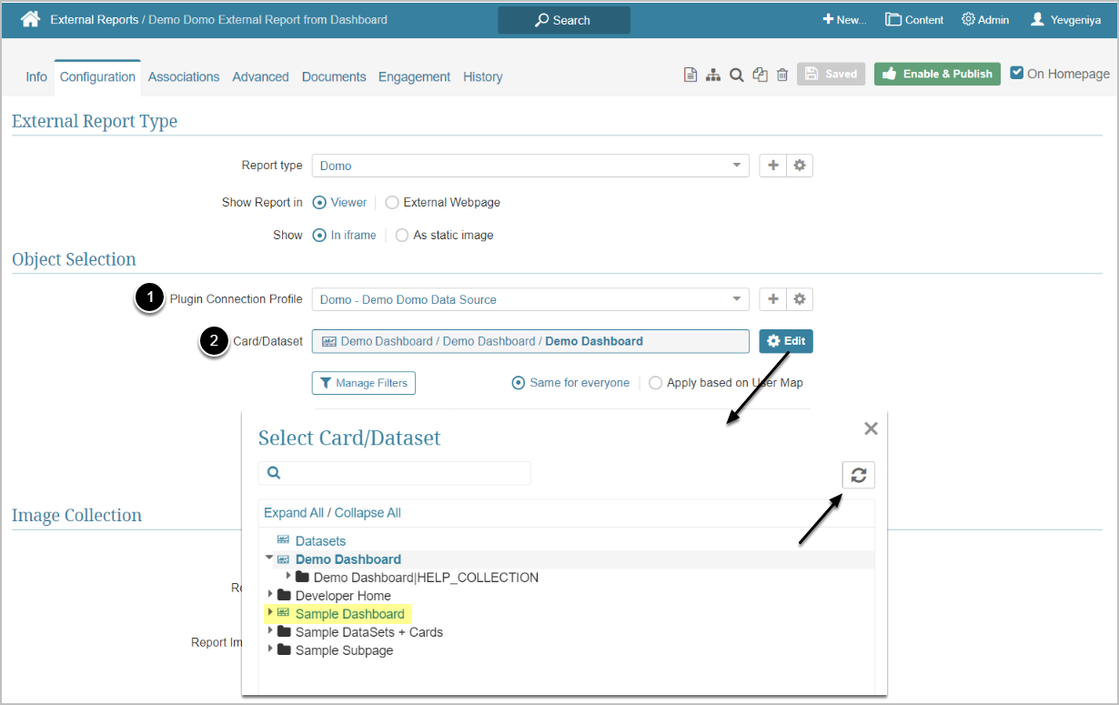 - Choose Card/Dataset from the pop-up list of available Domo objects that can be a source of data- Each item in the list is represented as the path (hierarchy) to the respective object in Domo.