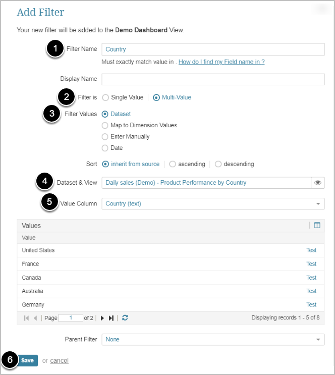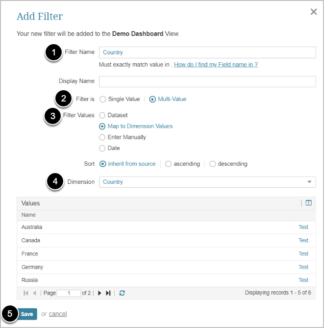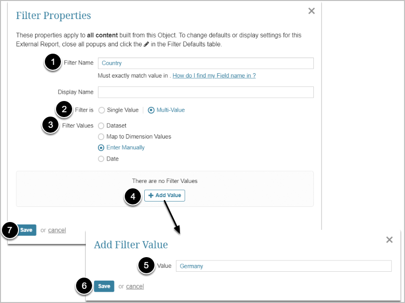 - Specify if Filter is "Single Value" or "Multiple Value"